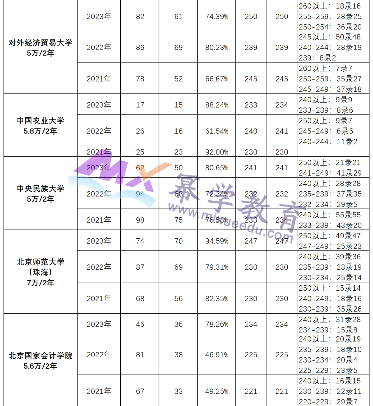 北京交通大学的性价比较高,虽然北京交通大学是理工类的院校,但会计专业实力也不容小觑。不过,北京交通大学全日制推免名额占比较大,每年对外招生人数比较少,想报考全日制的同学要谨慎考虑。