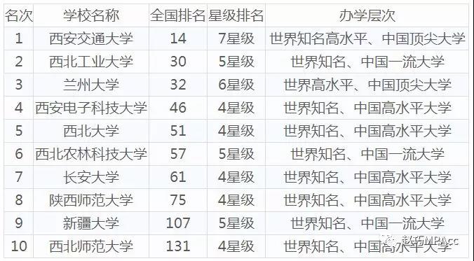 全国综合类院校MPAcc排名TOP10