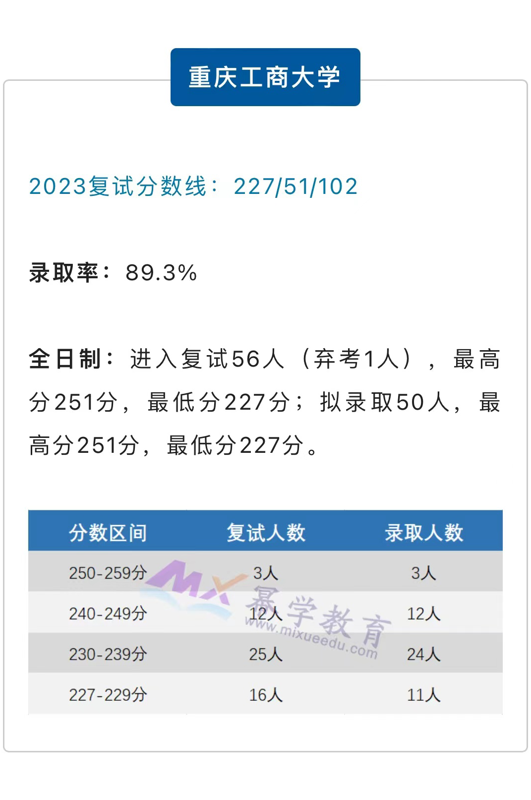 2018年招生计划25人,一志愿复试人数51人,实际录取33人,未公布进入复试和最终录取学员的初试成绩。学制3年,学费12000每年。