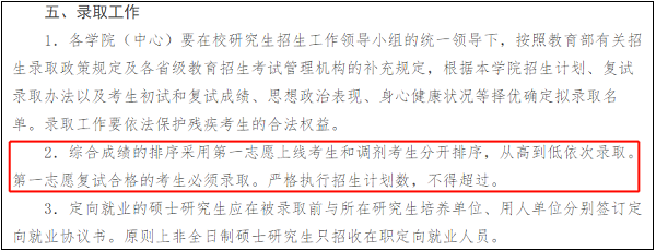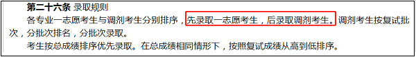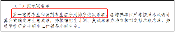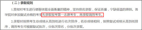 各学院(部)对参加复试合格的考生先录取报考第一志愿考生,再录取调剂考生。