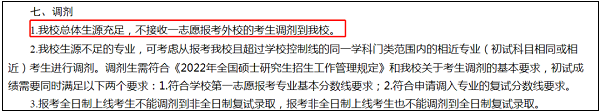 我校总体生源充足,不接收一志愿报考外校的考生调剂到我校。