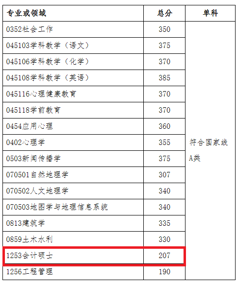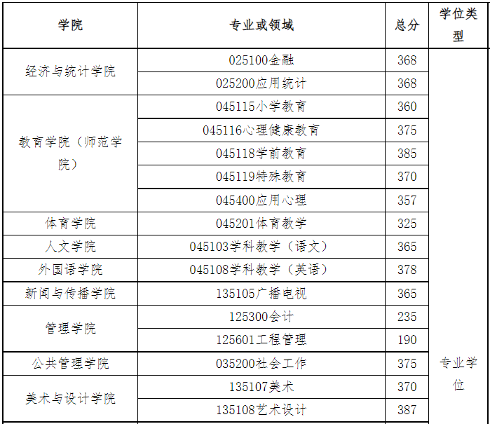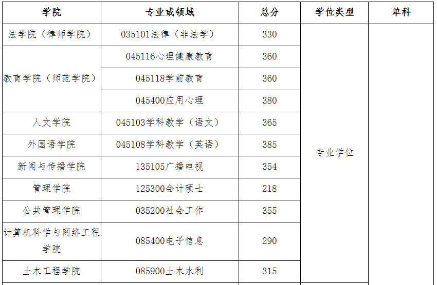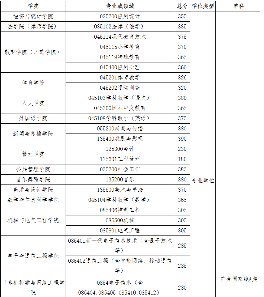 广州大学2023年硕士研究生招生考试考生进入复试的初试成绩基本要求已公布,2023年MPAcc复试分数线:235/51/102。
