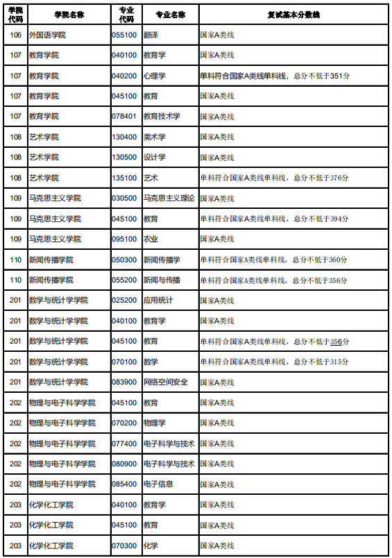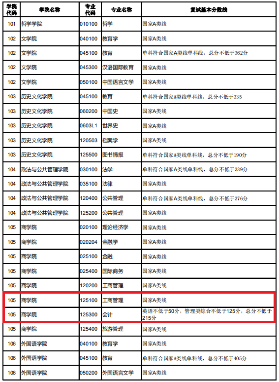 湖北大学2023年硕士研究生招生考试考生进入复试的初试成绩基本要求已公布,2023年MPAcc复试分数线:220/51/102。