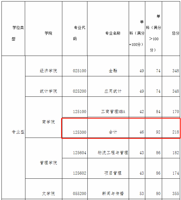 西安财经大学2021年MPAcc复试分数线:218/46/92。