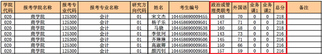 山东师范大学会计硕士(MPAcc)进入复试最低分数线:总分216分。