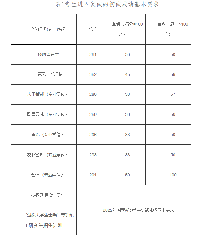 河北农业大学2022年MPAcc复试分数线:201/50/100
