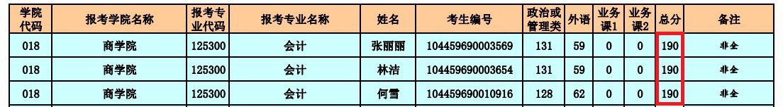天津大学2019年MPAcc复试分数线