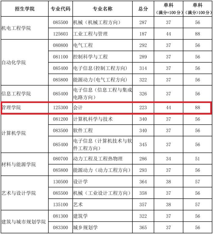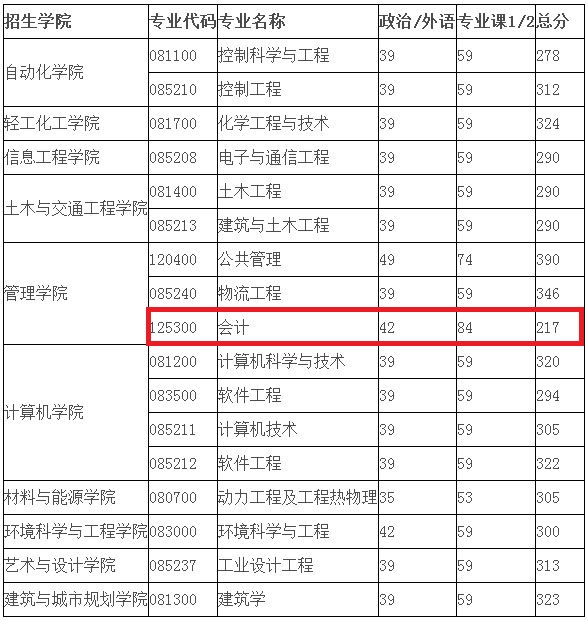 二、我校其他硕士招生专业执行国家初试成绩基本要求的A类考生分数线: