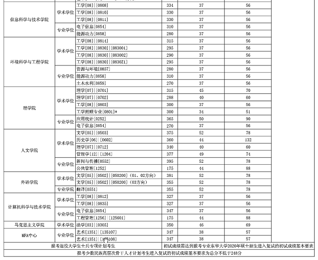 东华大学2020年MPAcc复试分数线