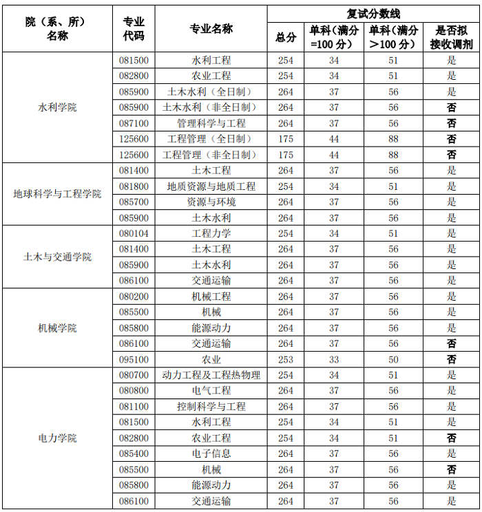 依据“2020 年全国硕士研究生招生考试考生进入复试的初试成绩基本要求”和华北水利水电大学设定的学科门类统考科目单科最低要求,结合各招生院系生源和计划等情况,划定各学科专业复试分数线。现予公布。