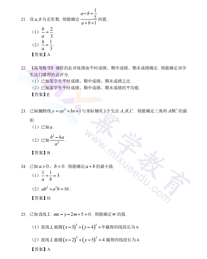 2022年MPAcc/MAud管理类联考-数学真题与答案解析!