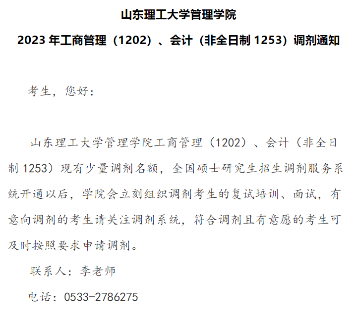山东理工大学2023年会计专硕(MPAcc)调剂通知