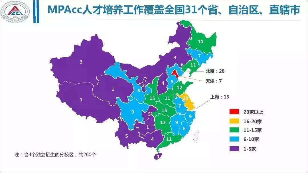 全国共34个省级行政区域,而MPAcc人才培养工作几乎覆盖了全部,就算没有覆盖到的,也可以在邻省享受教育资源。