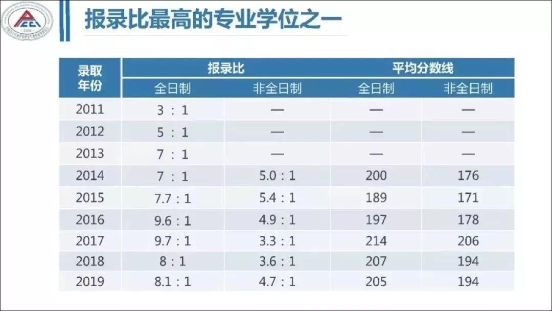 根据近两年的报录比来看,波动很小,难度较为平缓,报录比都在8:1左右;此外,如果加上非全日制的数据,总的录取率或者报录比还会有所下降。