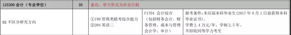 2018年非全日制会计硕士(MPAcc)计划招生人数为30名。非全日制,学制3年,最长不得超过5年。