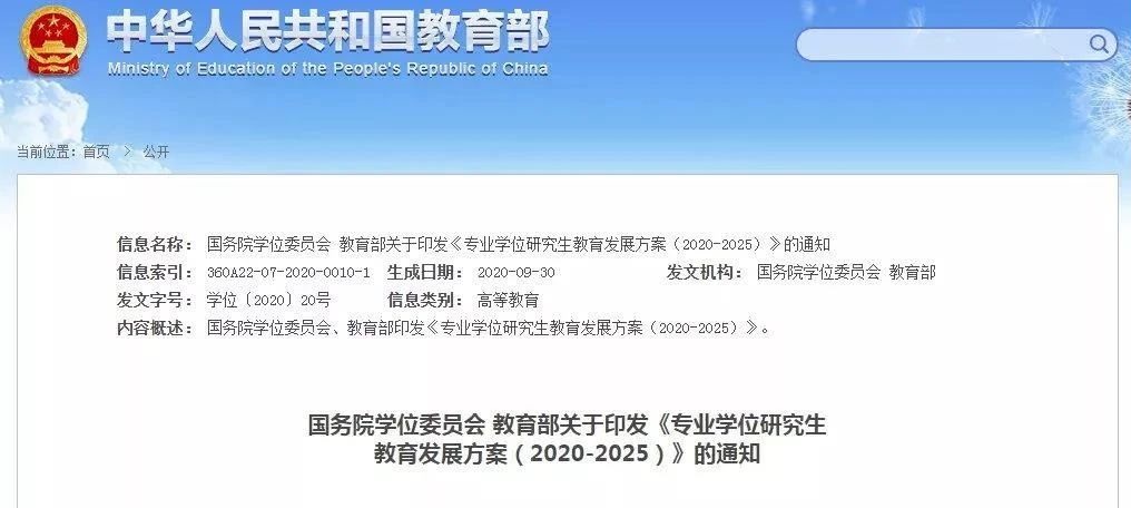 其实,早在2020年9月份,国务院学位委员会、教育部发布的《专业学位研究生教育发展方案(2020-2025)》通知中明确表示,对专硕进行扩招。