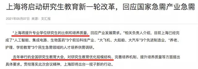 前不久,研招网更新消息《上海将启动研究生教育新一轮改革,回应国家急需产业急需》。明确指出,上海将提升专业学位研究生的比例和培养质量。