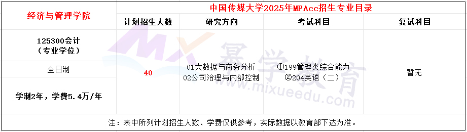 中国传媒大学2025年MPAcc招生简章