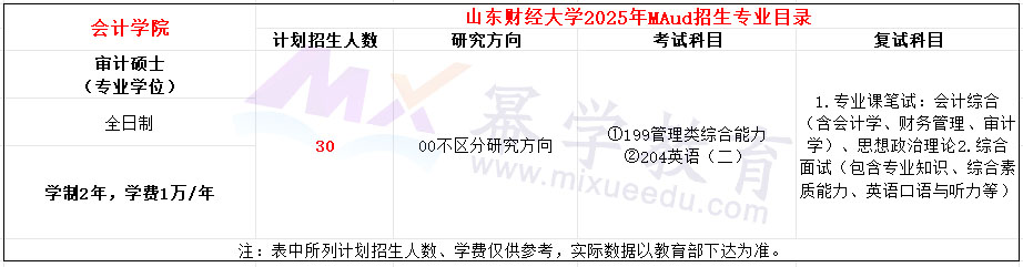 北京国家会计学院2019年MAud全日制招生40人,学费38000元;非全日制招生50人,学费80000元。