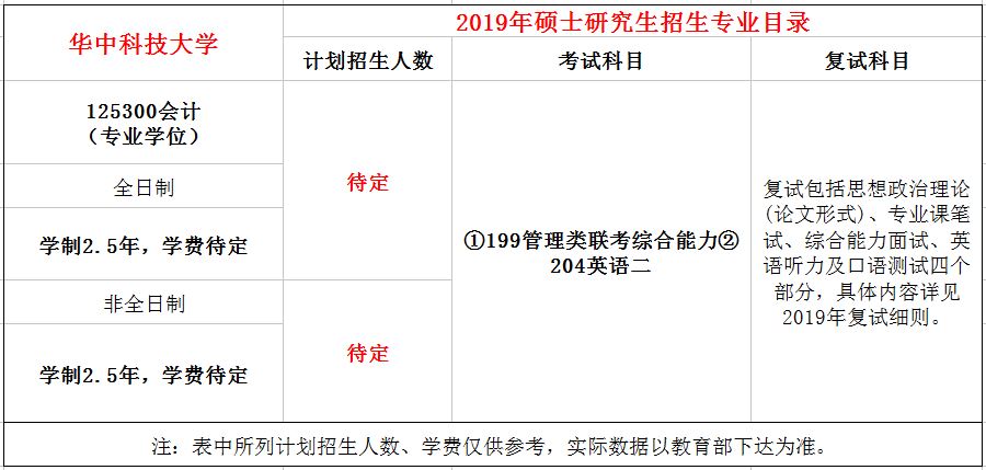 华中科技大学2019年MPAcc招生信息已公布,报考的同学要抓紧咯