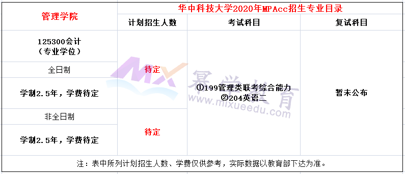 华中科技大学2020年MPAcc招生简章