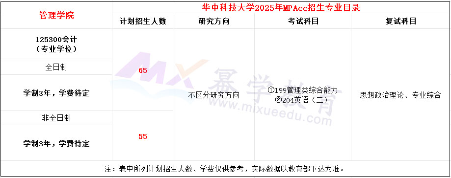 华中科技大学2025年MPAcc招生简章