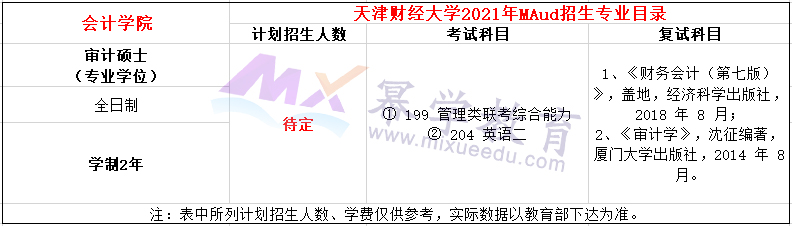 天津财经大学2021MAud项目计划招生全日制学制2年,学费暂未公布。