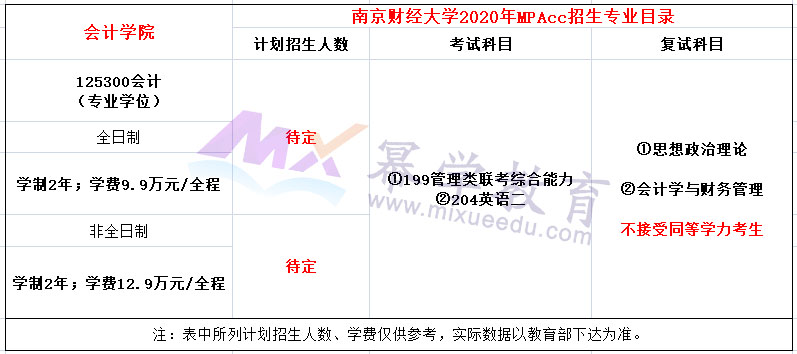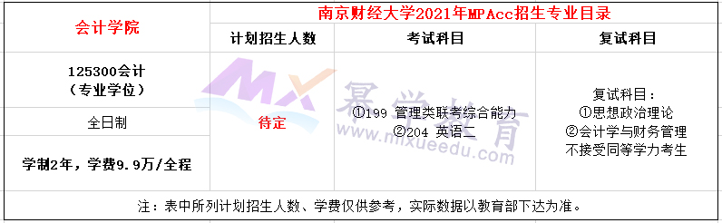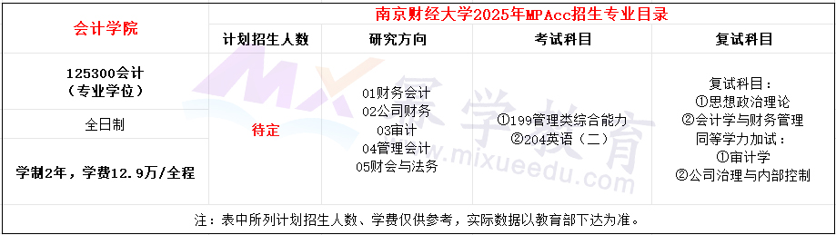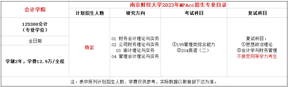 南京财经大学2023年MPAcc全日制学费全程129000元,学制2年。
