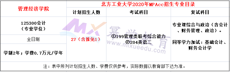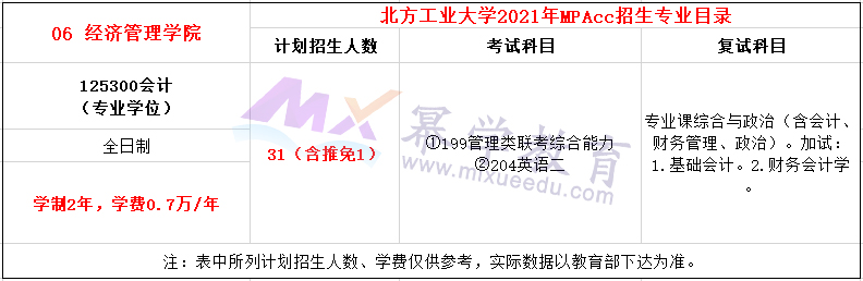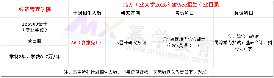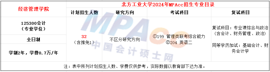 北方工业大学2024年硕士研究生招生简章已公布,2024年MPAcc会计专硕全日制计划招生32人,学费每年7000元,学制2年。