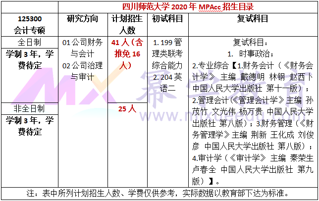 四川师范大学2024年MPAcc硕士研究生招生简章!