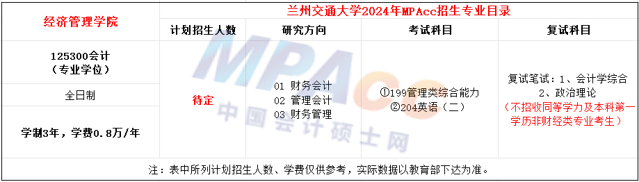 兰州交通大学2022年硕士研究生招生简章公布,MPAcc全日制学费每年8000元,学制3年。