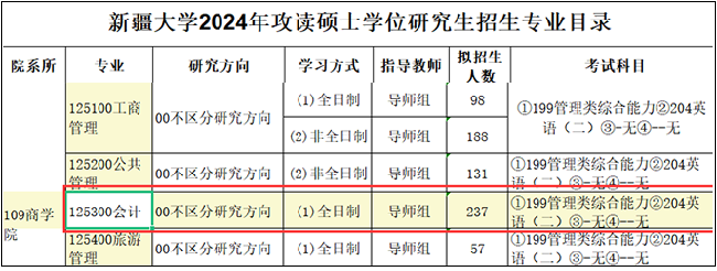 2024年新疆大学MPAcc全日制分数线为205分,较去年211分下降6分!