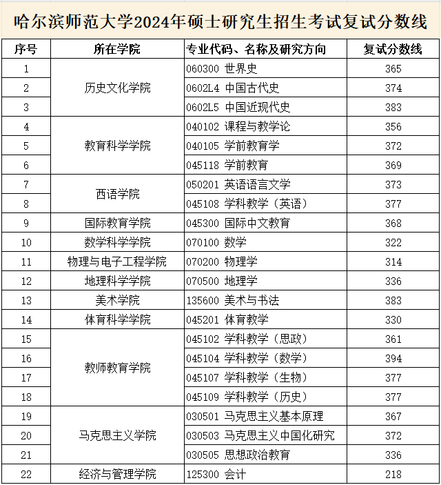 哈尔滨师范大学2024年MPAcc复试分数线