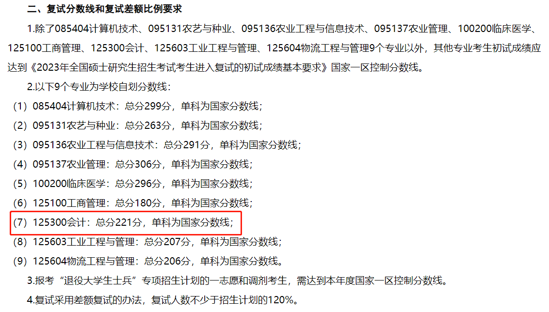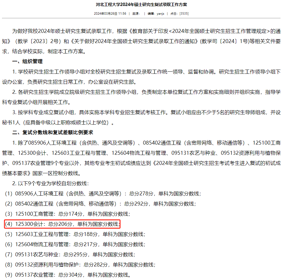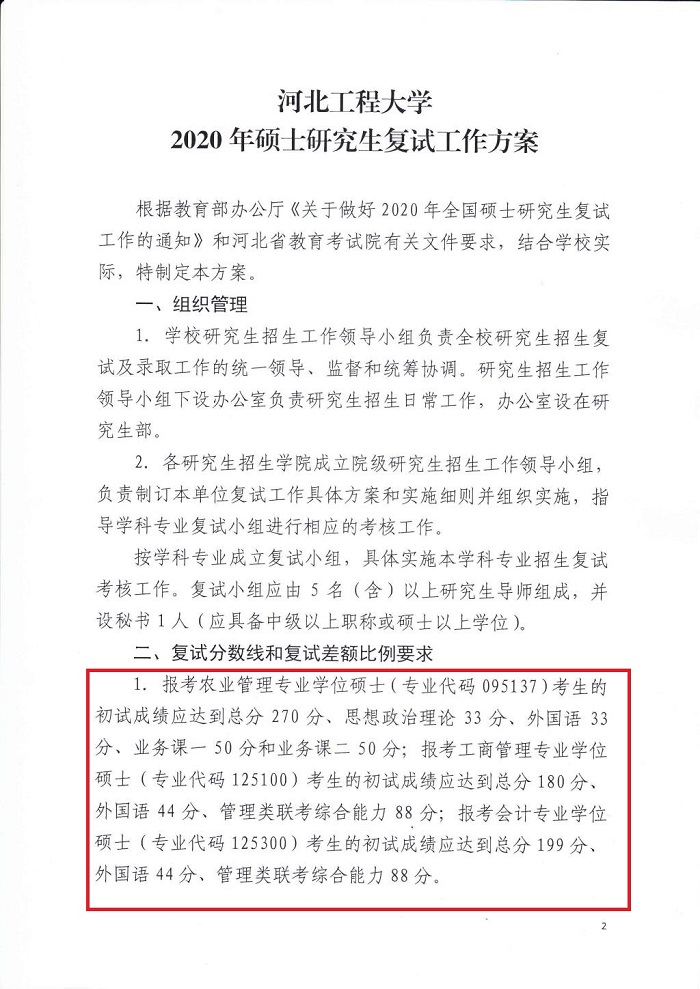 河北工程大学2023年硕士研究生招生考试考生进入复试的初试成绩基本要求已公布,2023年MPAcc复试分数线:221/51/102。