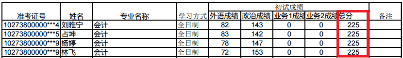 | 报考“少数民族高层次骨干人才”计划考生进入复试的初试成绩基本要求为总分不低于280分,其中报考会计专硕的不低于185分 | ||||