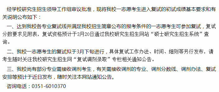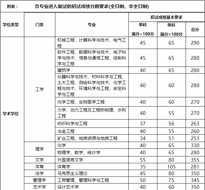太原理工大学2023年硕士研究生招生考试考生进入复试的初试成绩基本要求已公布,2023年MPAcc复试分数线:197/51/102。
