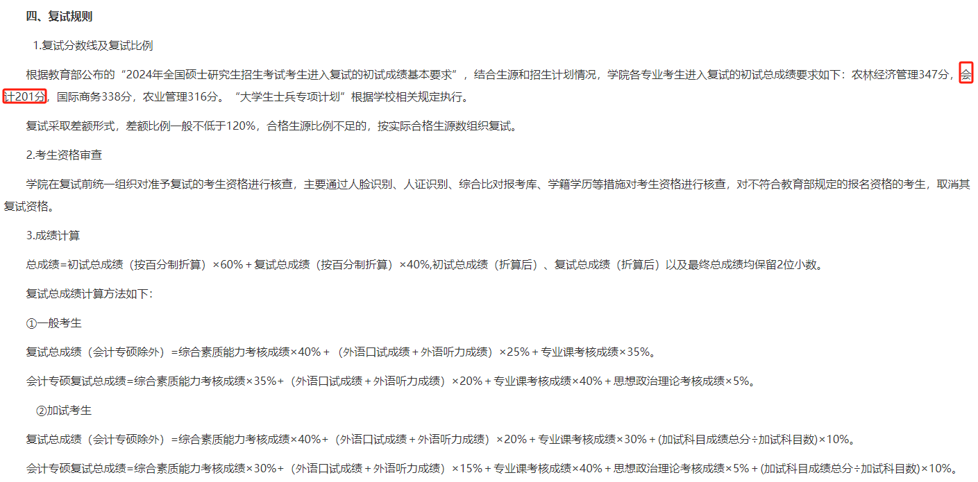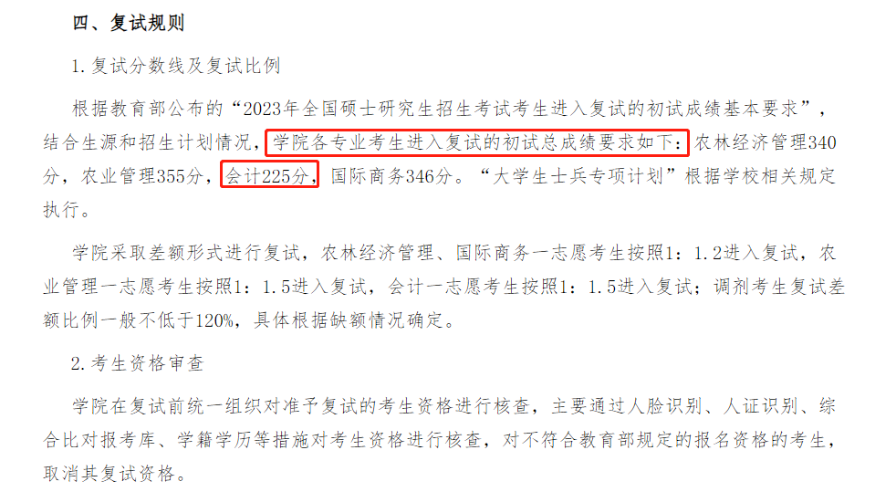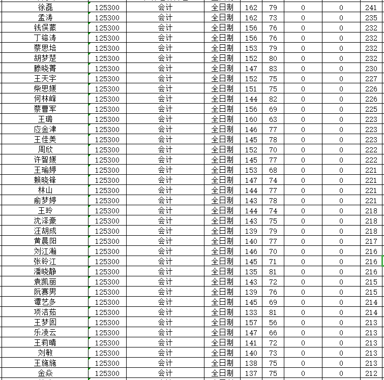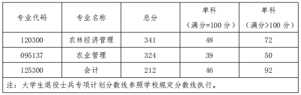 浙江农林大学2021年MPAcc复试分数线:212/46/92。