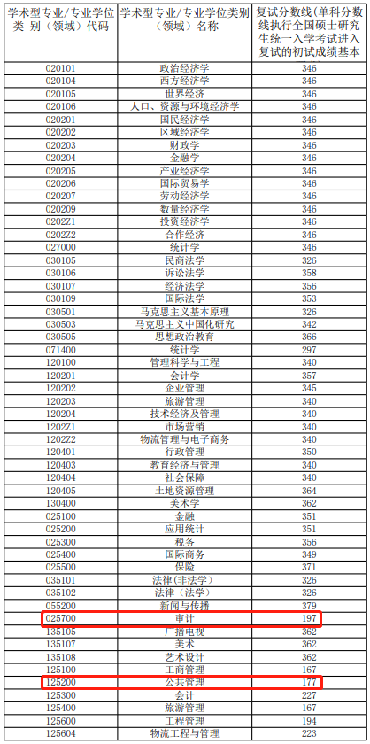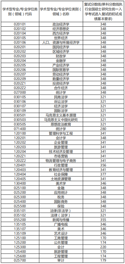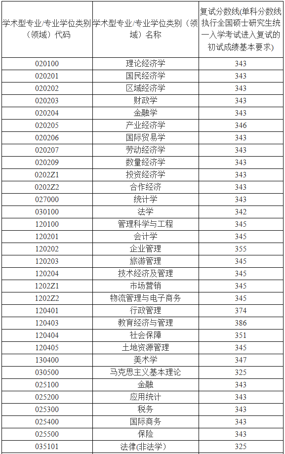 安徽财经大学2019年硕士研究生招生各专业复试分数线
