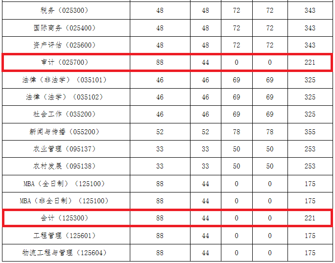 河南财经政法大学2021年MPAcc/MAud复试分数线