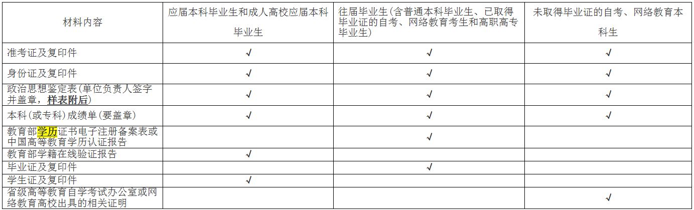 根据硕士研究生报考条件,所有拟参加复试的考生根据本人情况,携带以下证明材料原件及复印件进行资格审查: