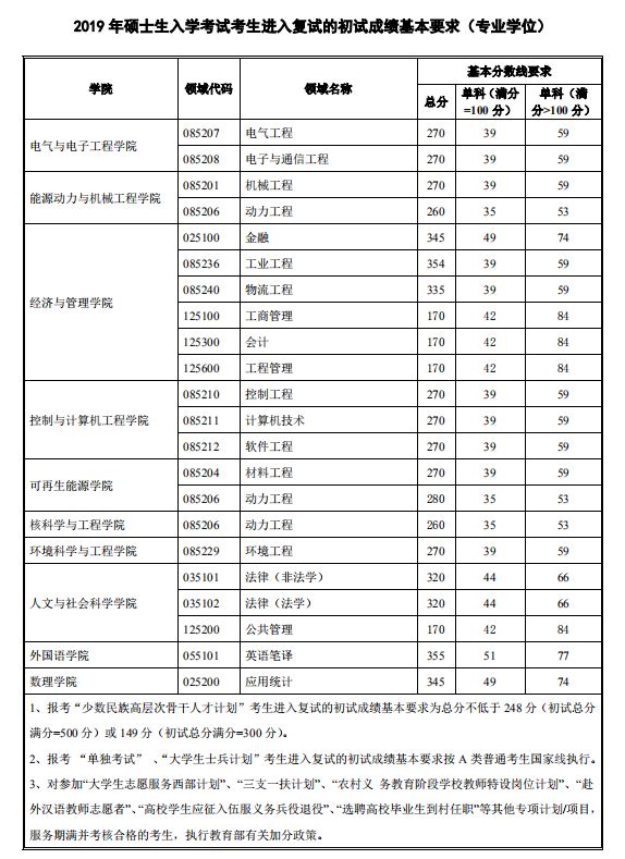 2020年硕士研究生招生考试考生进入复试的初试成绩基本要求(专业学位)