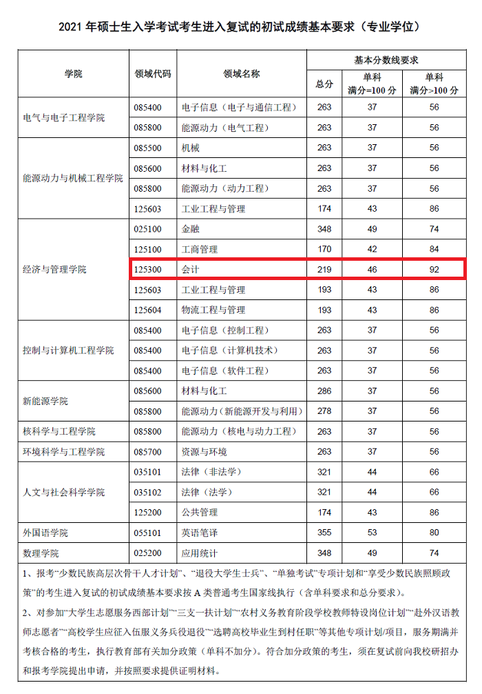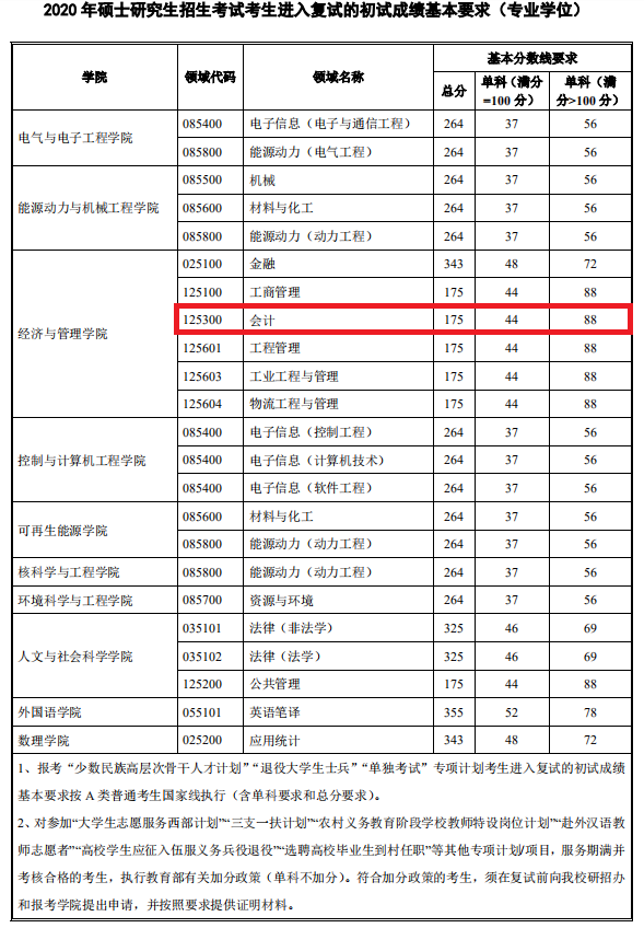 华北电力大学2020年MPAcc复试分数线的基本要求:175/44/88