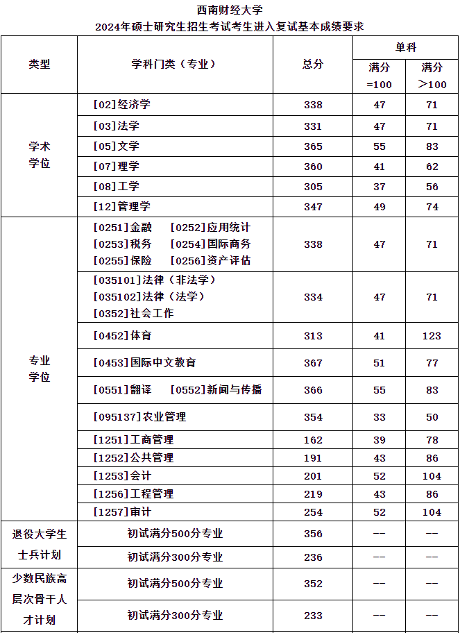 于公布西南财经大学2021年硕士研究生招生考试考生进入复试基本成绩要求的通知
