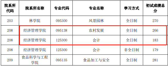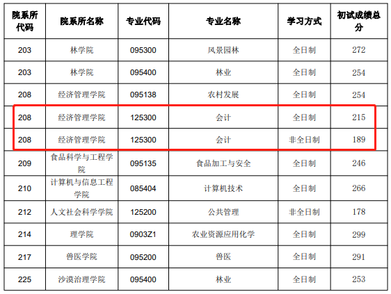 内蒙古农业大学2022年MPAcc复试分数线
