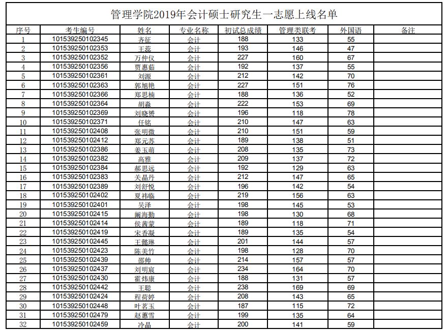 哈尔滨工业大学2019年MPAcc复试分数线公布