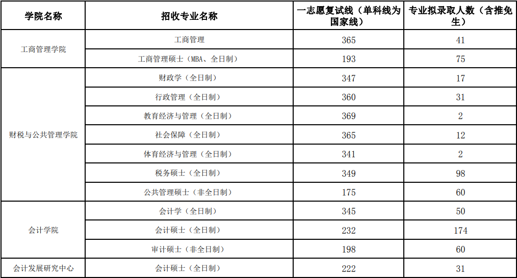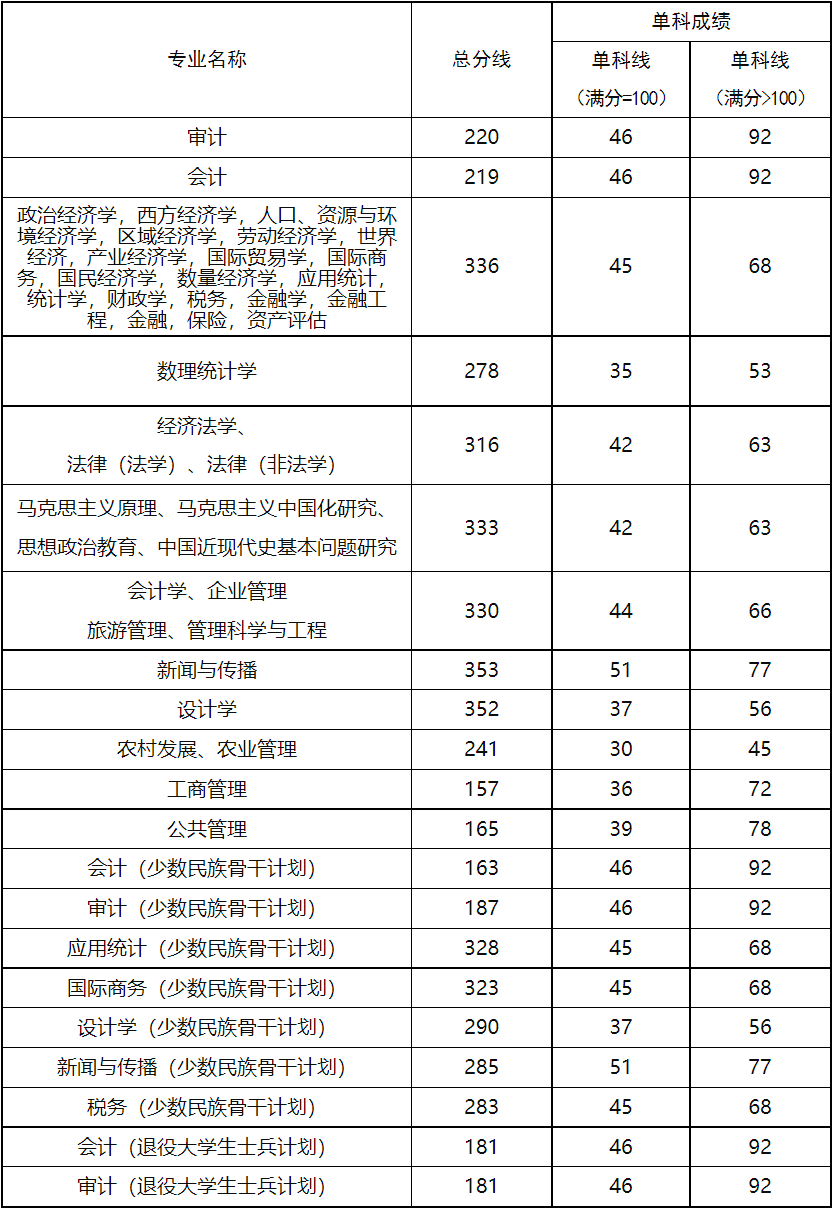 兰州财经大学2023年MPAcc/MAud复试分数线
