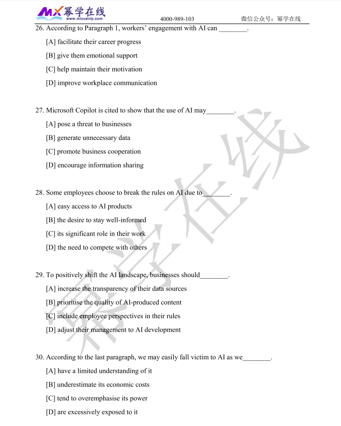 2024年MPAcc管理类联考-数学真题答案已公布!