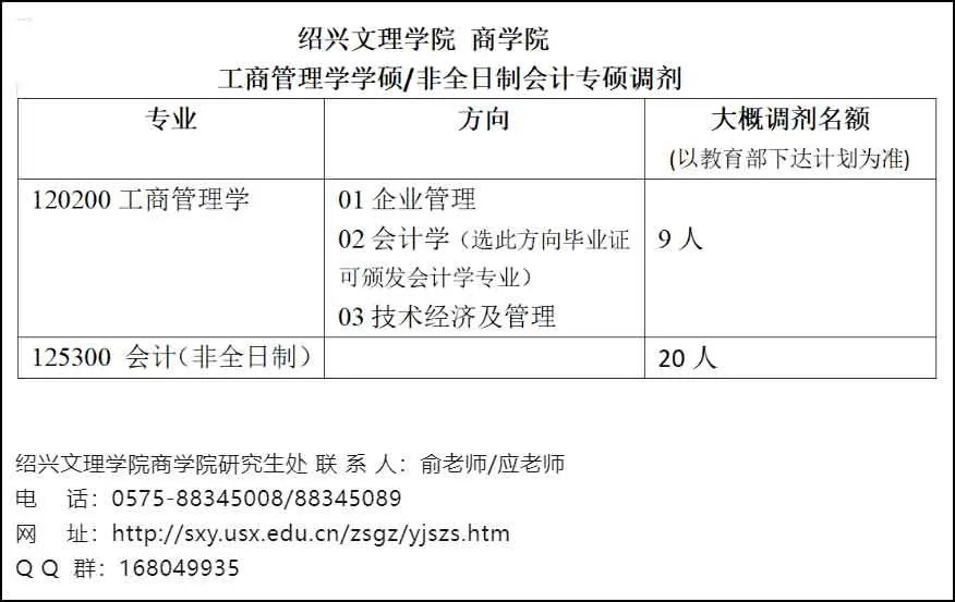 绍兴文理学院2024非全日制MPAcc会计专硕预计有20个调剂名额!