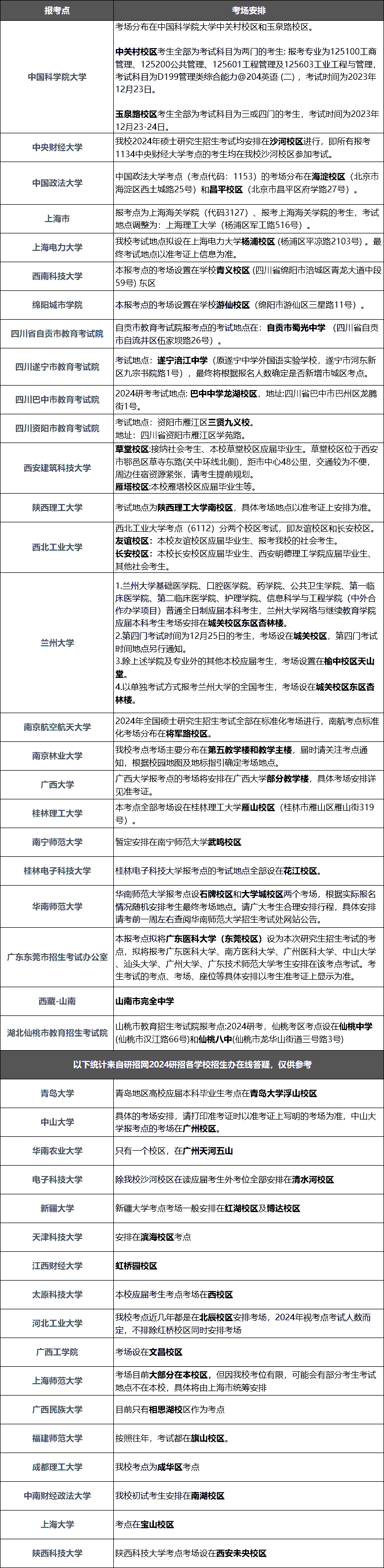 提醒:以下信息来源自学校官网、报考点公告以及研招网在线答疑,同学们可做参考,最终以准考证上考场安排为准!