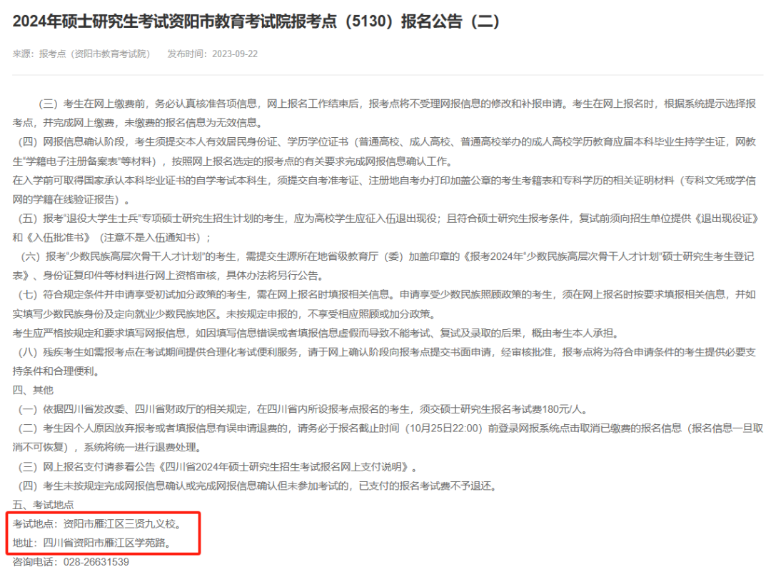 比如四川省资阳市教育考试院,就在网报公告(二)中明确给了考试地点。